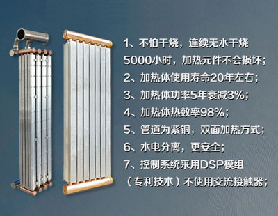 成功研發(fā)升級至第六代全新智能沈陽全導(dǎo)體電鍋爐機(jī)組。產(chǎn)品采用全導(dǎo)體加熱變頻技術(shù),節(jié)能設(shè)計(jì),熱效率高達(dá)98%以上,水電分離,獨(dú)有的故障自檢,防凍防干燒等十大保護(hù);不使用交流接觸器,采用DSP控制模組、工作無聲音,不怕潮濕;采用國內(nèi)正泰原裝配件,穩(wěn)定耐用,智能控制,功率衰減小,比傳統(tǒng)沈陽電鍋爐節(jié)能30%以上“公司能夠生產(chǎn)單機(jī)500-6000千瓦大型電鍋爐、大功率電鍋爐、大型工業(yè)電鍋爐、大型電加熱鍋爐”